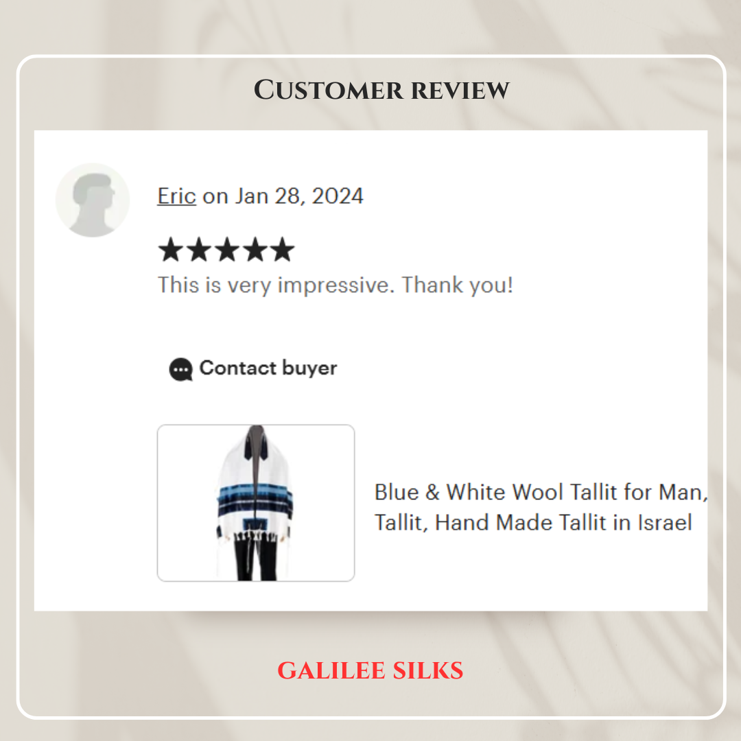 • Personalized items (name embroidery on the tallit or tallit bag, custom size)delivery within 3-7 business days once ordered.