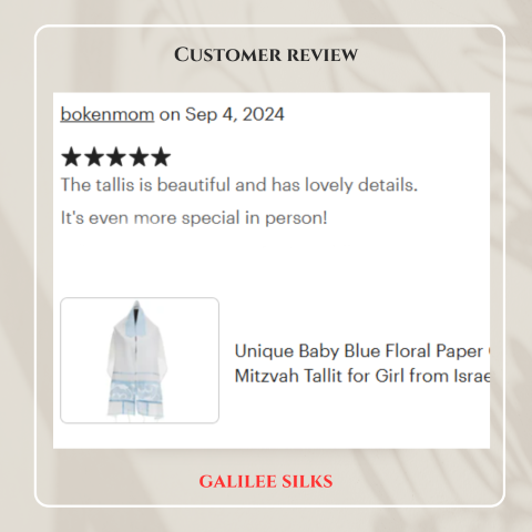 • Personalized items (name embroidery on the tallit or tallit bag, custom size)delivery within 3-7 business days once ordered.
